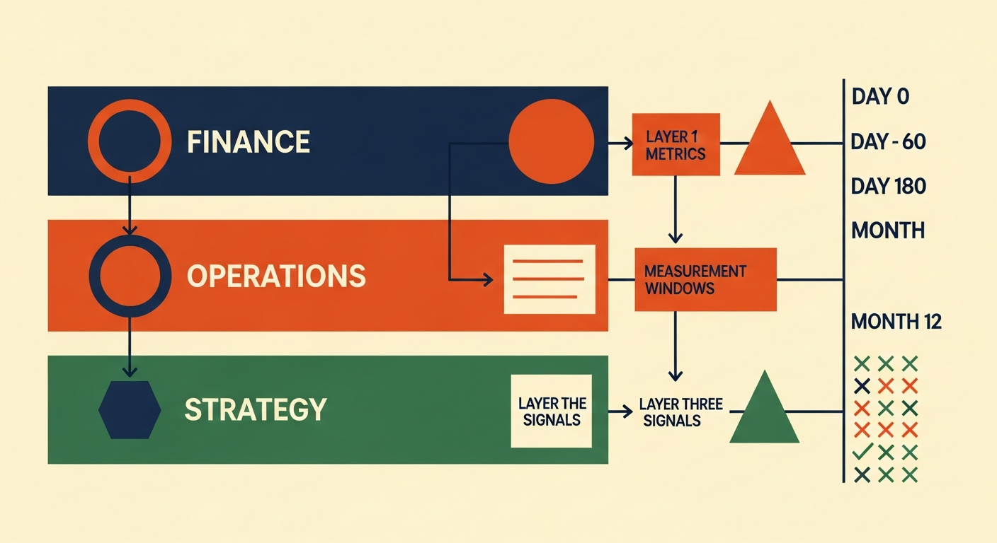 Layer One appears in the first 60 days. If it doesn't, your implementation is broken or your use case wasn't real. This is your kill gate. If you see no Layer One movement by day 60, you're not waiting for compound value to show up—you're throwing money at a bad bet.